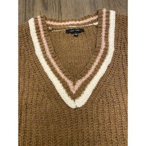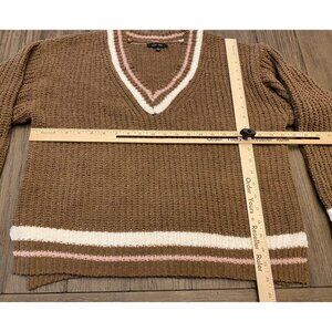 Love Tree Sweater Women’s L Brown V-Neck Ribbed Knit Striped Trim