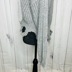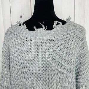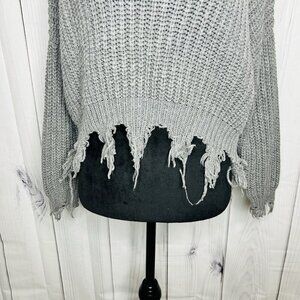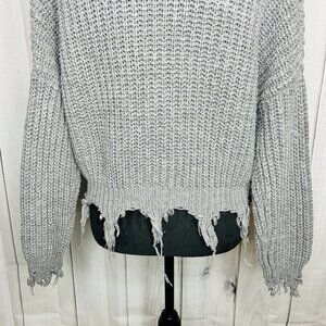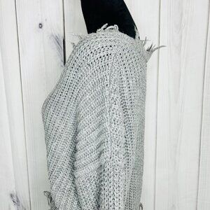 Love Tree Sz Small Cable Knit Crop Slouchy Fit Gray Sweater Distressed Fringe