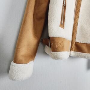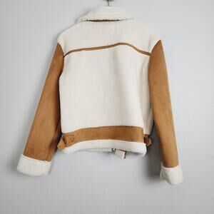 Love Tree Tan Faux Suede Sherpa Moto Jacket Aviator Biker Coat Camel Brown Large