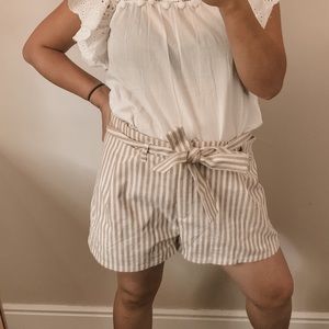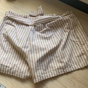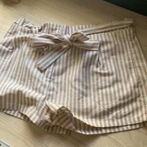 Love Tree- Tan Striped High Rise Waist Tie Short. Size L
