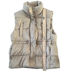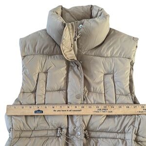 This tan quilted vest by Love Tree offers a stylish and functional layering option for cooler weather. Featuring a high collar and a sleek sleeveless design, it combines warmth with a sporty aesthetic. LIKE NEW CONDITION‼️‼️‼️