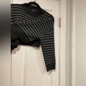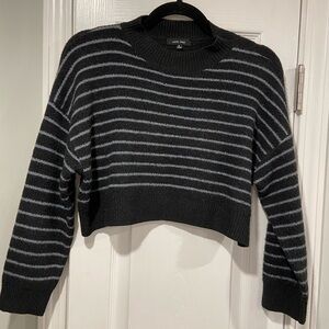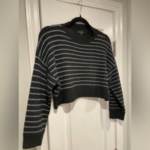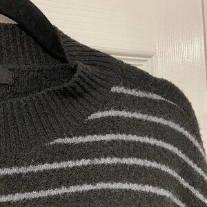 Love Tree Tilly’s Size S Black Gray Fuzzy Striped Mock Neck Cropped Sweater