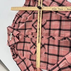 Love Tree Top Womens Small Pink Plaid Flannel Button Down Western