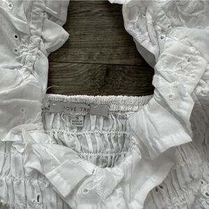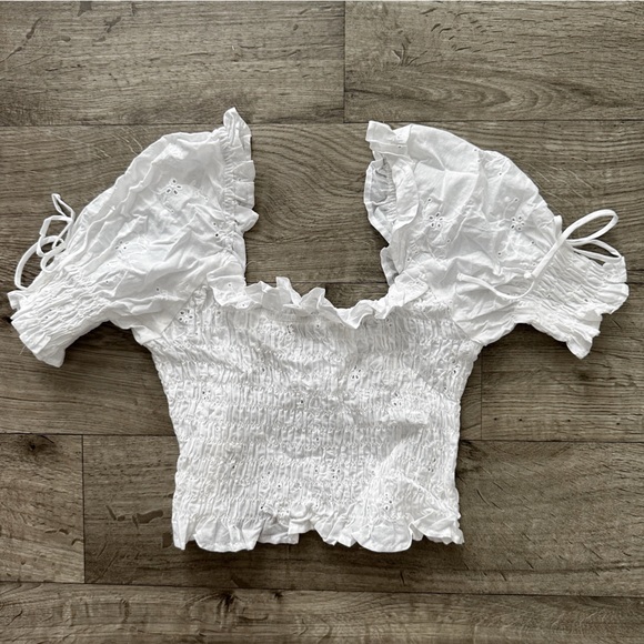 Elegant white ruffled top. Perfect for a chic look. Lightweight and stylish.