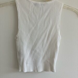 Stylish white ribbed tank with button detail. Ideal for casual wear. Soft and comfortable fabric.