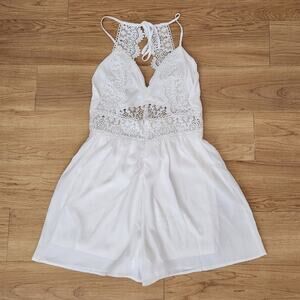 Love Tree White Romper Crochet Trim Open Back Size M