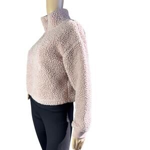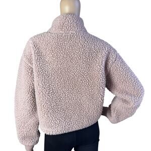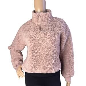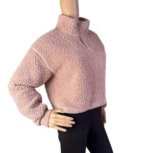 Love Tree Women Pink Sherpa High Neck Long Sleeves Cropped Pullover Sweater S