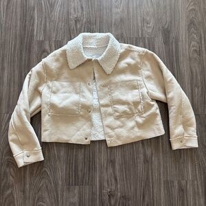 Love Tree Womens Cropped Sherpa Faux Leather Off White Cream Jacket NEW Vegan
