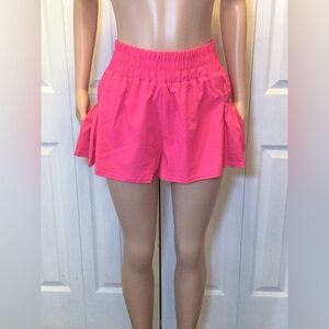 Love Tree Womens Hot Pink High Waisted Flowy Athletic Shorts W/ Pockets Size L. (Bin A02) New with tags. From smoke free home. * Gray pair/cell phone is not included and to show fit only.