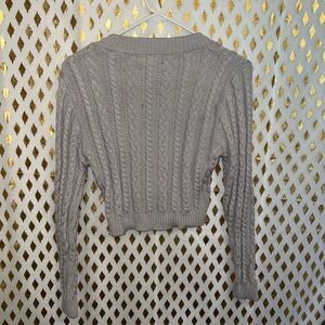 Love Tree Women's Juniors V-Neck Cropped Knit Sweater neutral grey size L