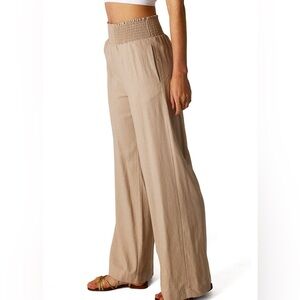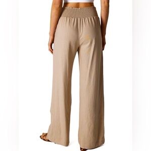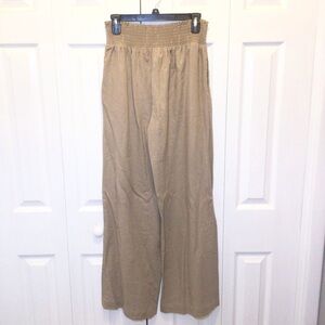 Love Tree Womens Khaki Smocked Waist Wide-Leg Linen Blend Pants. New with tag. From smoke free home.