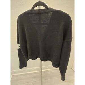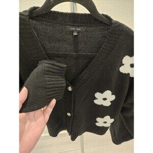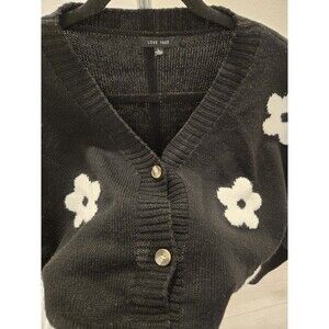 Love Tree Women's L Cropped Daisy Floral Cardigan, Black White Knit Sweater