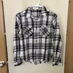 Love Tree Womens Large Black White Long Sleeve Flannel Button Up Shirt