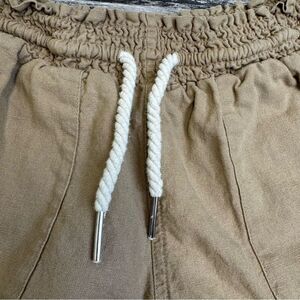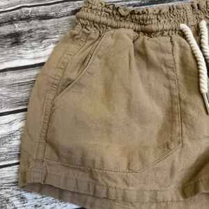 Love Tree Women's Linen Blend Drawstring Shorts S SM Small Tan Light Brown Loose