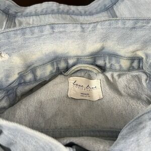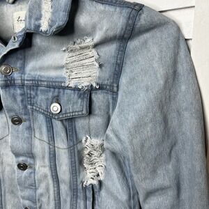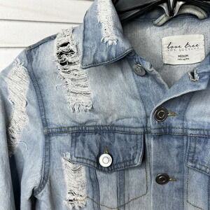 Love Tree Womens Lt Blue Button Up Distressed Denim Jean Jacket SZ M SHORT READ