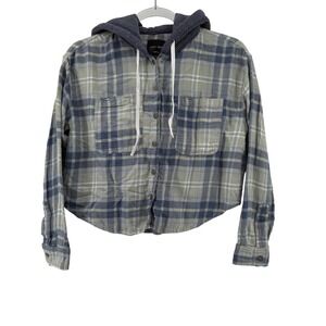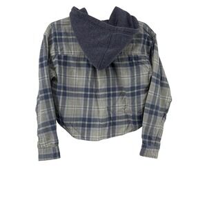 Love Tree Women's Medium Plaid Flannel Shirt Gray Knit Cropped Hoodie