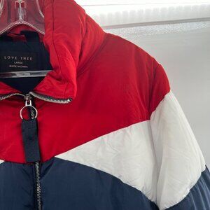 Love Tree Women's Puffer Coat Multicolor Colorblock Full Zip Size Large