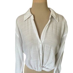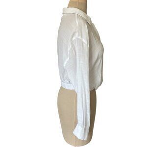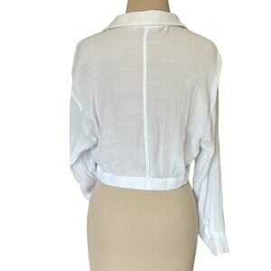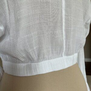 Love Tree Women's Sheer White Long Sleeve Button Cropped Blouse, Size L