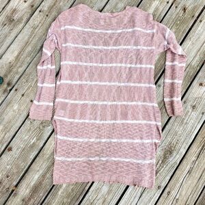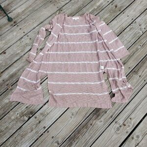 Love Tree Womens Sz Large Long Cardigan Dusty Rose White Stripes