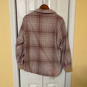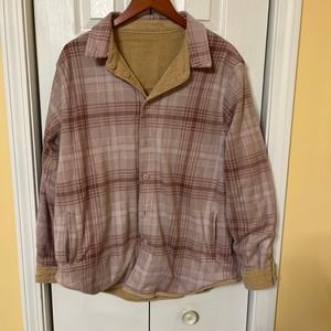 Love Tree Women's Tan Corduroy Pink Flannel Reversible Shacket Pockets XL