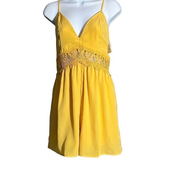 Love Tree Women's Sleeveless Crochet Open Back Yellow Romper Size S NWT