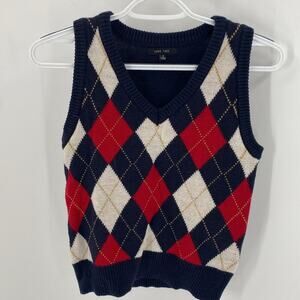 Love Tree argyle red blue knit vest Academia holiday retro size S Y2K