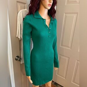 Love Tree bodycon green ribbed long sleeve collared 1/4 button sweater dress. L. Very stretchy. This dress is gorgeous & perfect for fall & winter, especially the holidays.