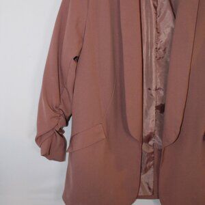 Love Tree dusty pink open-front 3/4 ruched sleeve flap front faux pocket blazer