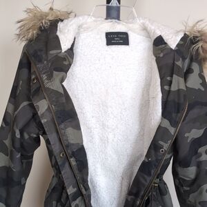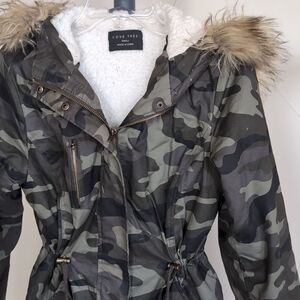 Love Tree Sherpa Drawstring Camouflage- Removable Fur-Trimmed Women's Jacket
