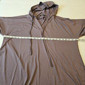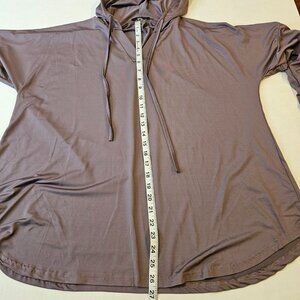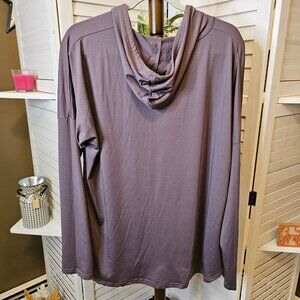Love U Dear, Plus Size 1X, Plum, Off Shoulder, Hooded, with ties, Long Sleeved, V-neck, Shirt, Polyester, Machine wash, Line dry, See Pics for Approx Measurements. Gently Worn, remains practically new.
