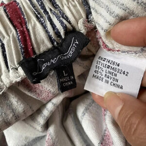 Love University Linen Blend Shorts Striped Pockets Beach Summer Casual Lady L