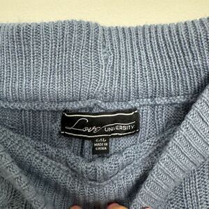 Love University Women's High Rise Knitted Twisted Pattern Blue Gray Pants Size 2XL