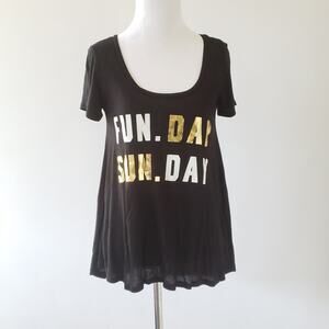 Love Vintage Fun Day Sunday Swing T-shirt Black Metallic Text Small