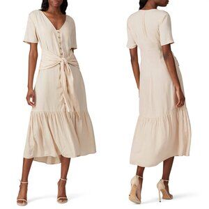 Love, Whit by Whitney Port Revolve Midi Dress XL Large Medium Small XS Cream Pink Nude Tie Waist Button - Coquette aesthetic. This trendy tie-front maxi from Love, Whit is a dream to style with its neutral nude shade classic V-neckline. Nude pink satin (100 % polyester). Hourglass. Short sleeve. V-neckline. Front Buttons. MSRP: $236