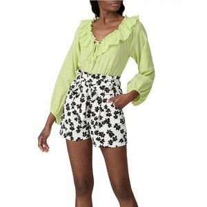 Love Whit Whitney Port Citron Green Ruffle Blouse Size Small MSRP $158