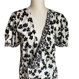 White and black ditsy floral knit (97% polyester 3% spandex) Wrap Dress