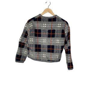 L.o.v.e Women’s Tartan Plaid Cardigan Gray Blue Sweater Size Small