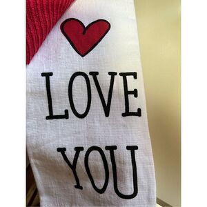 Set of 3 Kitchen Towels 1 Love You More And 1 Love You And 1 Red Cute Towels.On The Back Of I Love You More Is I Love You And On Love You Is Love You More