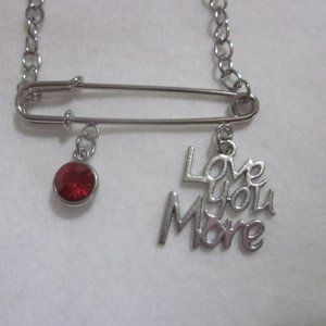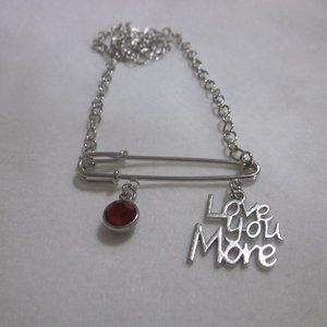 Silver tone safety pin & chain link. Lobster claw clasp. This one is discounted for missing the middle loop.