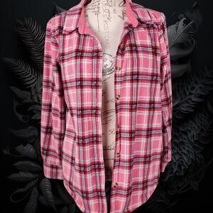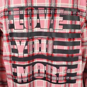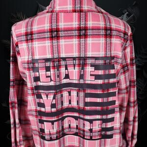Love You More Valentines Jacket - Fleece Pink and Red Plaid - Size Medium