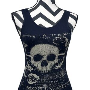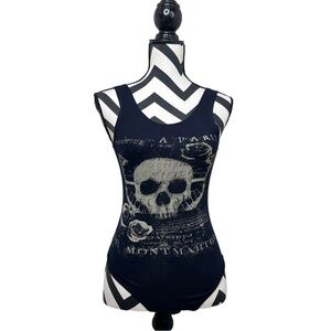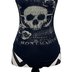 Love You To Death Skull Goth Punk Biker Sz S Bodysuit.