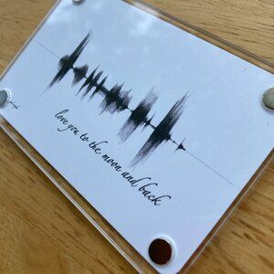 The phrase “love you to the moon and back” was spoken to create this soundwave design. It's the audio made visual.