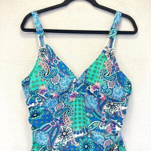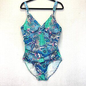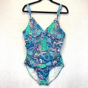 Love Your Assets Sara Blakely Spanx One Piece Swimsuit Size XL Colorful Paisley