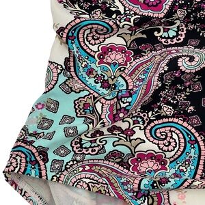 Love Your Assets by Sarah Blakely Spanx one-piece swimsuit. Halter neck with silver chain detail in a super cute paisley print. Removable breast pads.