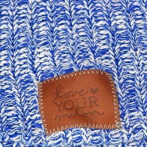 Love Your Melon Blue White Beanie Leather Patch Cotton Knit Hat.