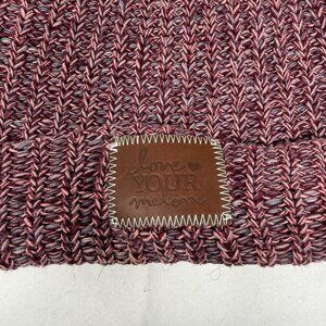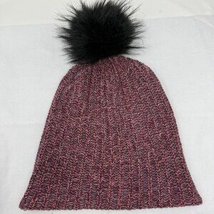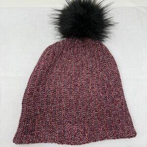 Love Your Melon Knit Beanie Faux Fur Pom Pom 100% Cotton Maroon Black Speckled