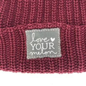 Love Your Melon Knit Cuffed Beanie Hat Fold Over Burgundy