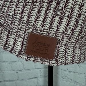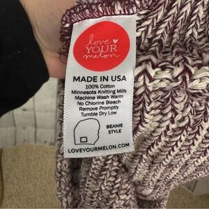 Love Your Melon hat. Beanie style. Maroon and cream.