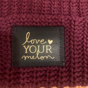 Love your melon Burgundy Pom Beanie With Gold Writing. Never worn! You can purchase more pom poms for a fun look, or remove the pom for a more casual look. This color will complement any hair color. Pet and smoke free home.