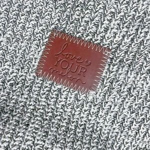 Love Your Melon Speckled High Cowl Neck Knit Sweater. Size Medium. In excellent very gently worn condition. This comfy signature white cowl neck knit sweater is your ultimate fall essential. This sweater features a relaxed fit and has a tall cowl neck that can be worn up or folded down. Oversized cozy fit. Leather logo patch on back. Black & white speckled.